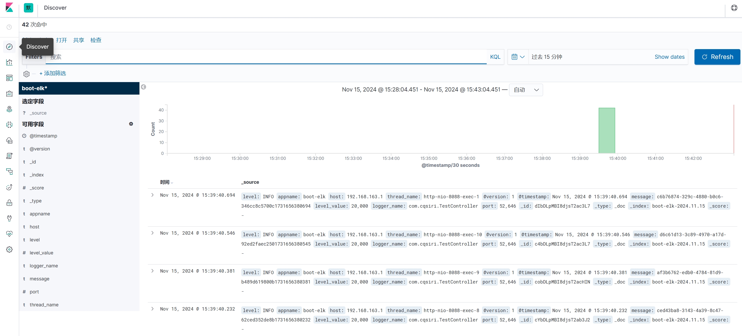 配置logback,将日志推送到logstash监听的端口。logstash会解析数据插入到Elasticsearch中。