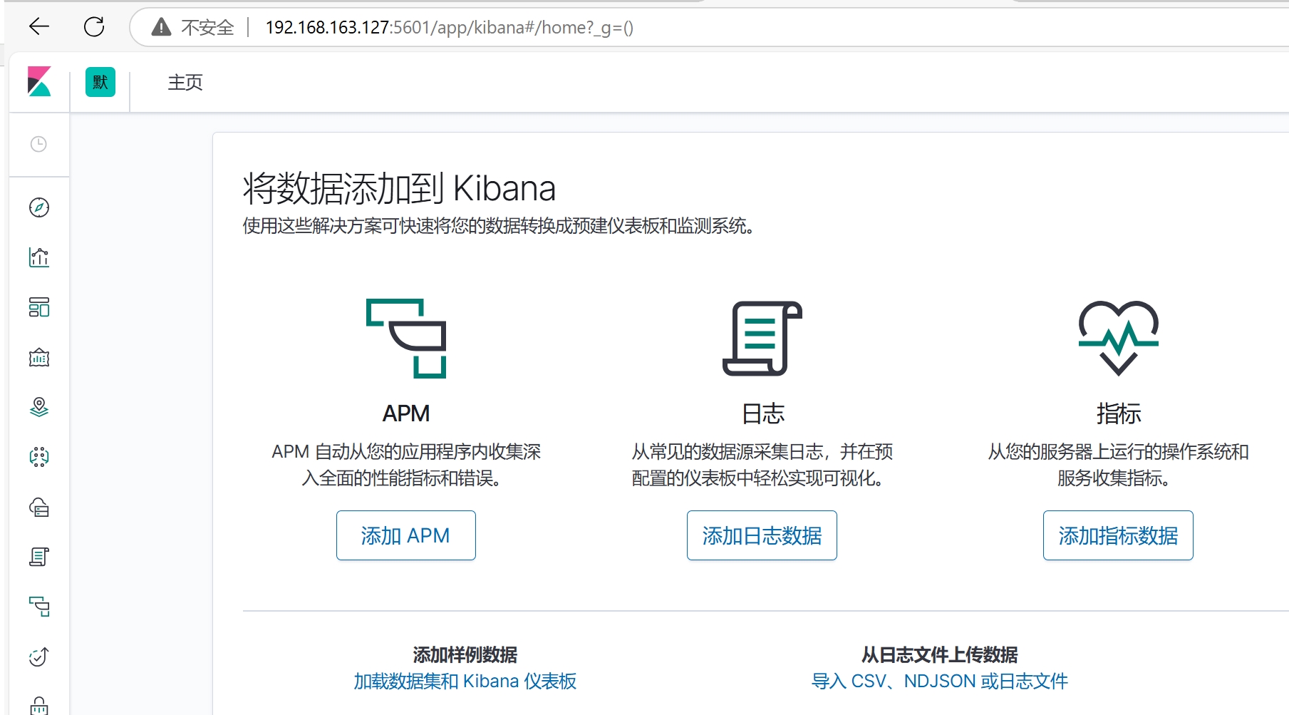 systemctl start kibana等待一段时间,浏览器访问ip:5601端口