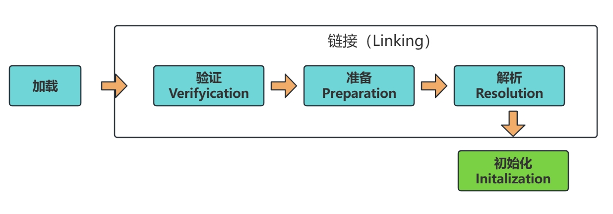 - 为类变量分配内存并且设置该类变量的默认初始值(基本数据类型为零值,引用类型为null)