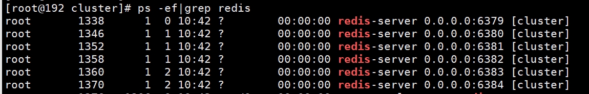 touch cluster6379.conf cluster6380.conf cluster6381.conf cluster6382.conf cluster6383.conf cluster6384.confbind 0.0.0.0