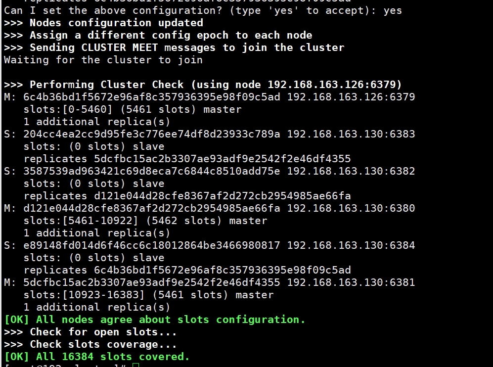 | 192.168.163.126:6379@16379 | 192.168.163.130:6384@16384 |