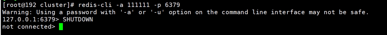 redis-cli -a 111111 --cluster del-node 192.168.163.126:6385 ad5dff8109241d3edeac55cf7a23b6c5f8f9a368