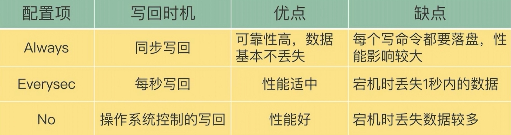Always同步写回,每个写命令执行完立刻同步地将日志写回磁盘