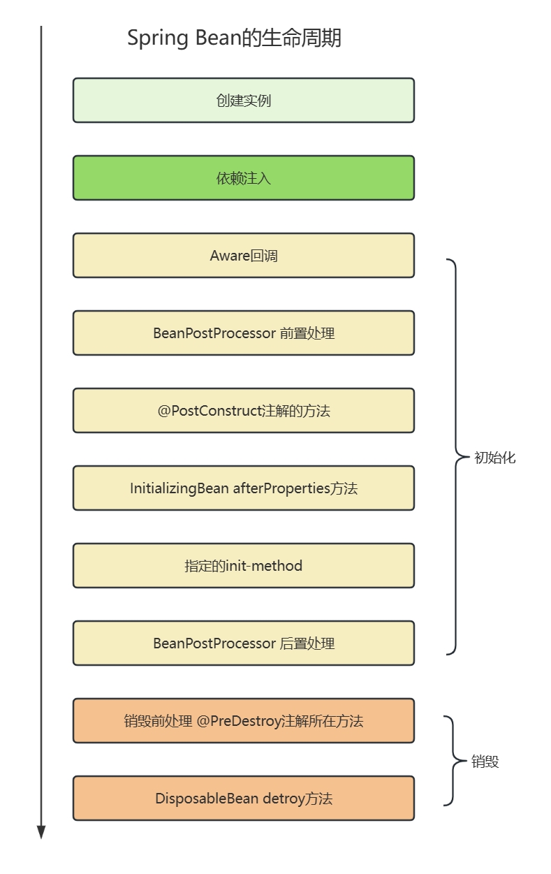 以上Bean的初始化就完成了,这时Bean才经过完整的生命周期,放入到单例池的一级缓存中。