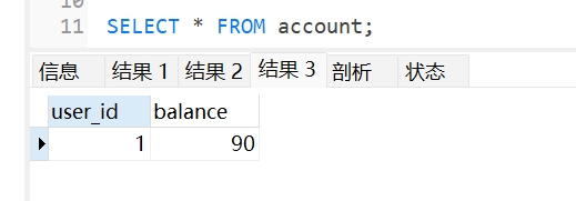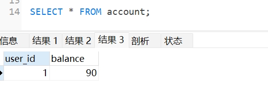 CREATE TABLE `undo_log` ( `branch_id` bigint NOT NULL COMMENT 'branch transaction id', `xid` varchar(128) NOT NULL COMMENT 'global transaction id', `context` varchar(128) NOT NULL COMMENT 'undo_log context,such as serialization', `rollback_info` longblob NOT NULL COMMENT 'rollback info', `log_status` int NOT NULL COMMENT '0:normal status,1:defense status', `log_created` datetime(6) NOT NULL COMMENT 'create datetime', `log_modified` datetime(6) NOT NULL COMMENT 'modify datetime', UNIQUE INDEX `ux_undo_log`(`xid`, `branch_id`), INDEX `ix_log_created`(`log_created`) );创建account表