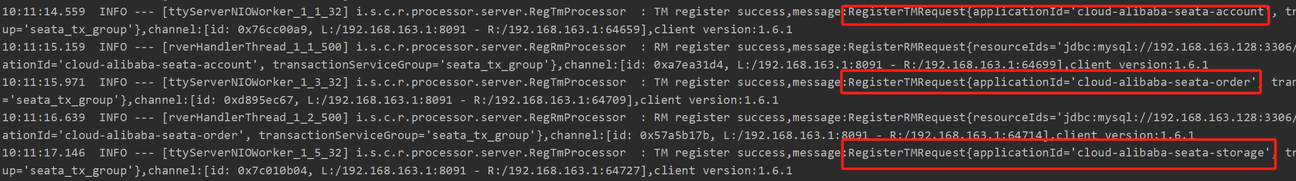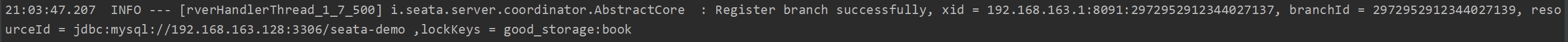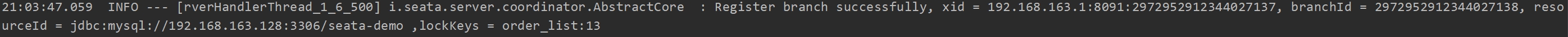 Register branch successfully, xid = 192.168.163.1:8091:2972952912344027137, branchId = 2972952912344027138, resourceId = jdbc:mysql://192.168.163.128:3306/seata-demo , lockKeys = order_list:13扣减库存注册进分支事务
