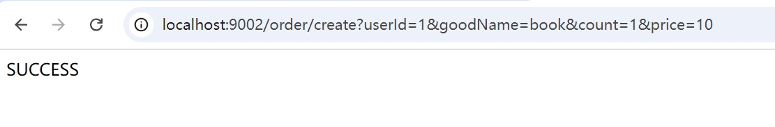 浏览器访问 localhost:9002/order/create?userId=1&name=book&count=1&price=10